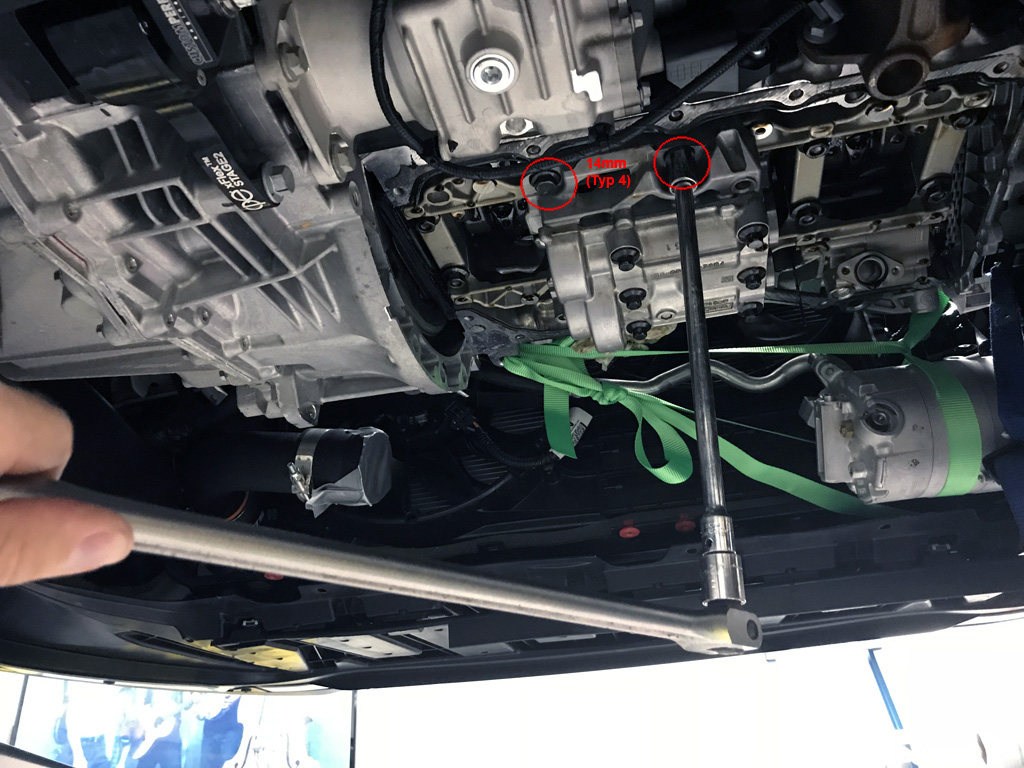 7. All of the transmission to engine block bolts need to be loosened so the oil pan isn't in a bind. (5) bottom + (3) top bolts.